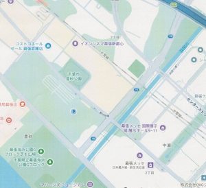 <千葉方面から> 東関東自動車道、湾岸千葉インターチェンジ」で下りR357を東京方面へ交差点を 2つ過ぎると立体交差がありますので上がらずに側道へ交差点を左折し 突き当りの交差点を右折して一つ目の信号を左折すると入口です。